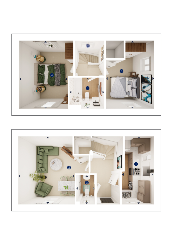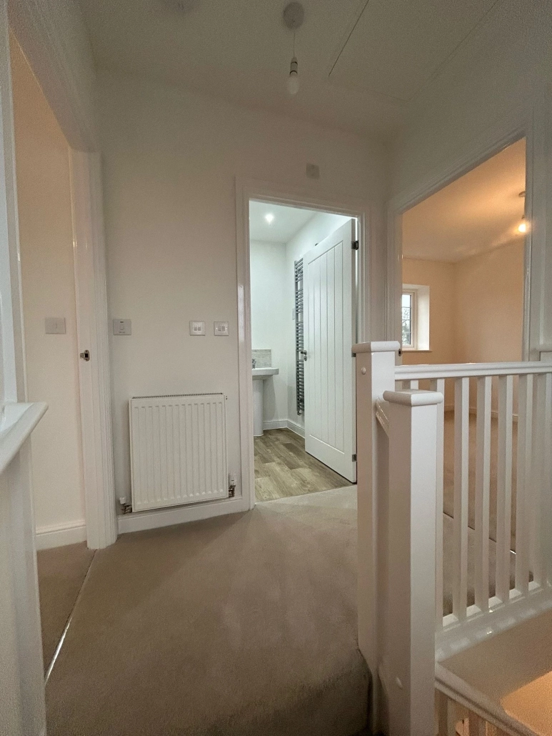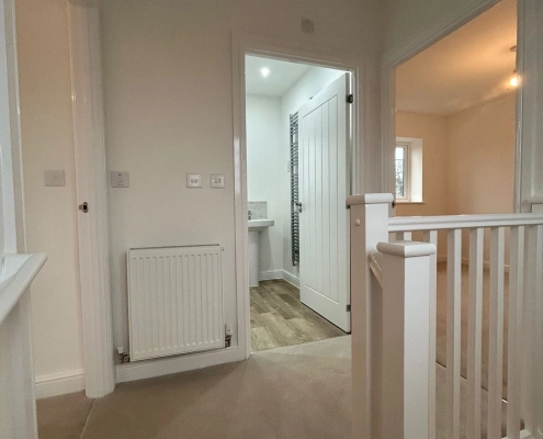 The first floor includes two good-sized bedrooms, one with an linen cupboard and the other again with a double aspect and also a family bathroom.