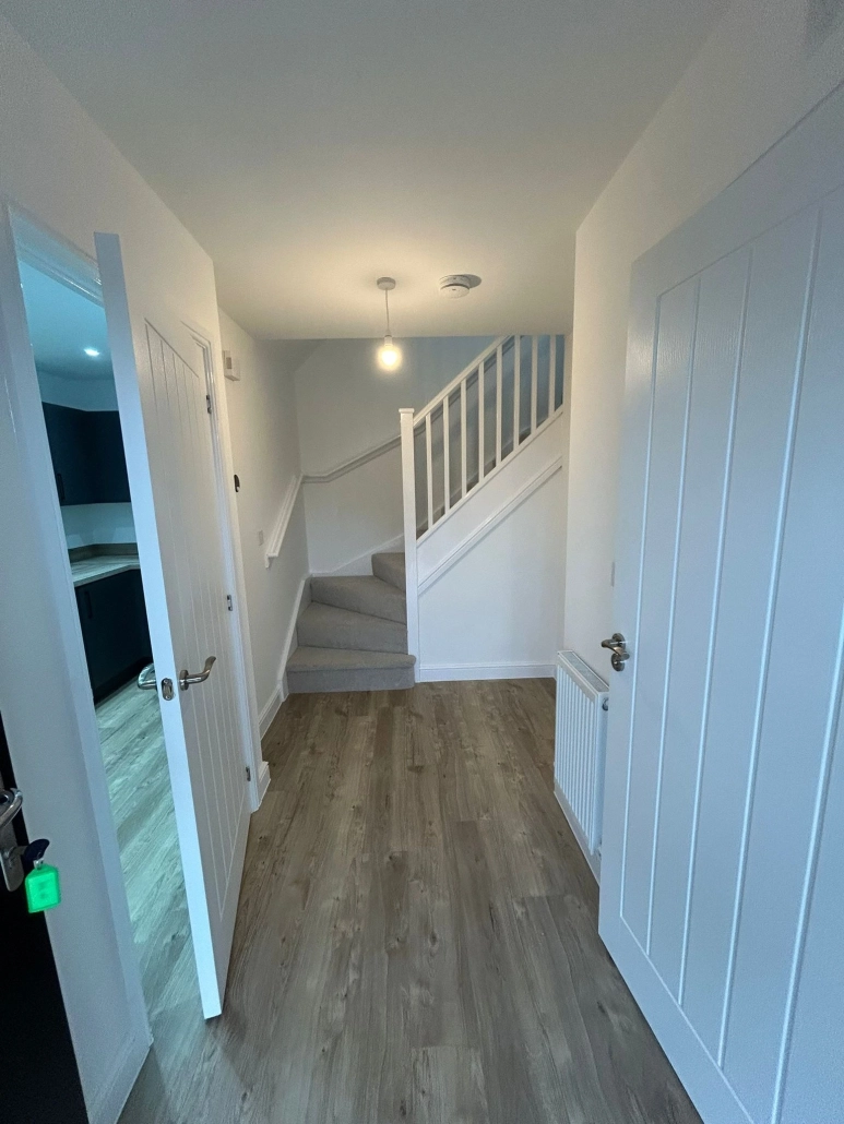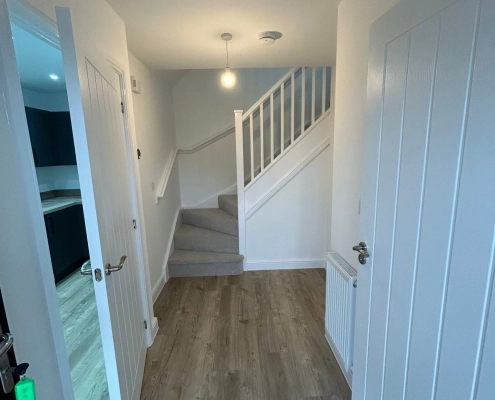 The kitchen enjoys a front aspect and the living room, with useful understairs store, is double aspect with a window to the front and French doors to the rear garden creating a real sense of light and space.